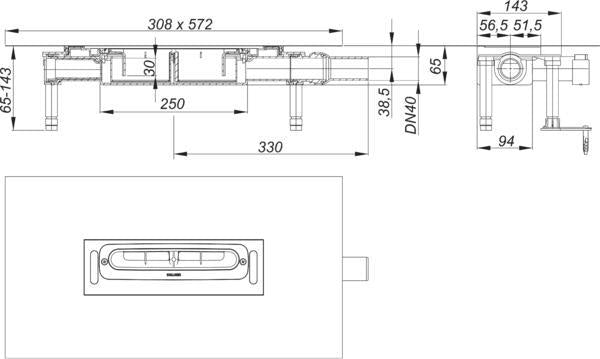sanibel Ablauf Abgang waagrecht zum Einbau mit sanibel Duschrinne S4 Bauhöhe 65 mm Ablaufgehäuse aus Polypropylen mit integrierter Sekundärentwässerung dreiseitig umlaufenden Verankerungen zur kraftschlüssigen Einbettung in den Estrich, herausnehmbarem Geruch- und Reinigungsverschluss mit 30 mm Sperrwasserhöhe durch integrierten Wechseleinsatz wendbar zur Anpassung an Wandbeläge 12-32 mm auch nach Einbau des Ablaufgehäuses in den Estrich flexibler Dichtflansch mit alkali- beständiger, nicht kapillarer, Riss überbrückender Anschluss-Manschette zum sicheren Anschluss an Verbund- und Bahnenabdichtungen Anschluss-Manschette kompatibel zu allen flüssigen Abdichtungsstoffen für Verbundabdichtungen gemäß DIN 18534, Randdämmstreifen, Bauschutzabdeckungen und vier durch Gummifüße schallentkoppelte Gewindebolzen zur Fixierung der Einbauposition und Einbauhöhe Ablaufstutzen aus Polypropylen, DN 40 seitlich, zum wahlweise rechts-, links oder frontseitigen Anschluss der Abwasserleitung Ablaufleistung nach DIN EN 1253: 0,51 l/s Bauhöhe: 65 mm Sperrwasserhöhe: 30 mm Modell: sanibel sanibel-Nr.: 70 82 976