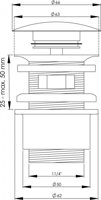Design-Excentergarnitur Sanibel mit Überlauf und Stopfen,verschließbar DN 32 x 60 mm / rund gewölbt