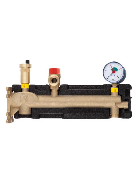 Gefäßanschlußgruppe Afriso mit Isolation mit integriertem Kappenventil, für Ausdehnungsgefäße bis 50 l