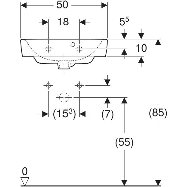 Geberit Renova Plan Handwaschbecken mit asymmetrischem Überlauf