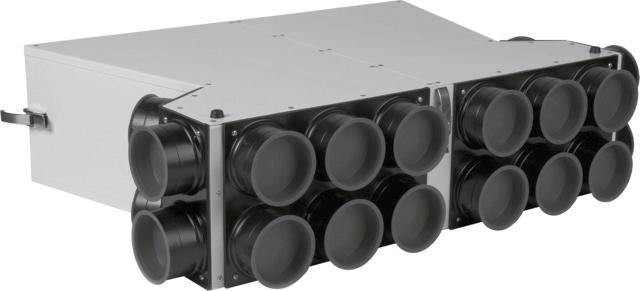 je 10 Kanalanschlüsse für Zuluft und Abluft. Zur direkten Montage an das Lüftungsgerät.