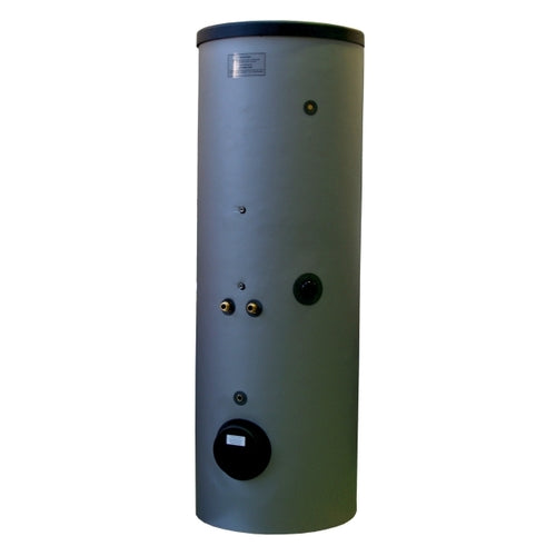 Solarspeicher aus Stahl mit zwei Glattrohr-Wärmetauschern, mit Emaillierung nach DIN 4753.