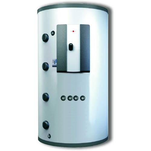 Platzsparender Schichten-Pufferspeicher aus Stahl mit Gütenachweis, Hygienische Warmwasserbereitung im Durchlauferhitzerprinzip mit Edelstahl-Warmwasser-Wärmetauscher, Geringe Auskühlverluste und geringer Platzbedarf durch Ein-Speicher-System, Erhalt der Temperaturschichtung im Pufferspeicher durch den Einsatz einer Zirkulationslanze (Zubehör), Keine Warmwasserladepumpe erforderlich, Geringe Verkalkungsneigung auch bis 70° C.